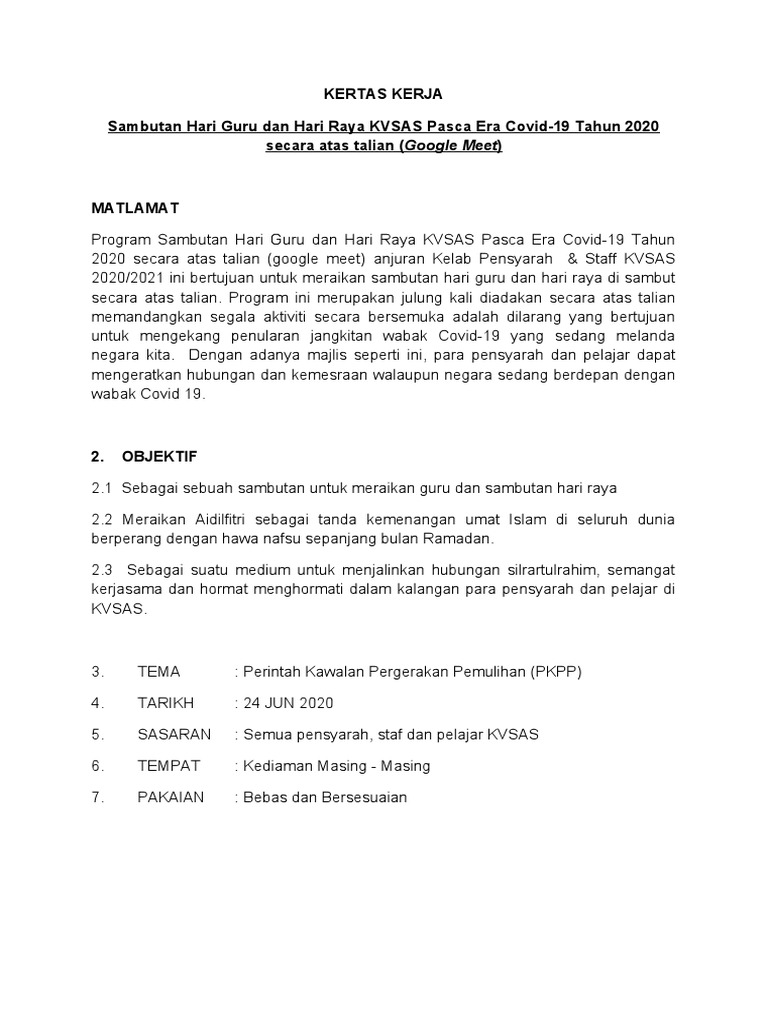 Kertas Kerja Sambutan Hari Guru Dan Hari Raya 2020 Pdf
